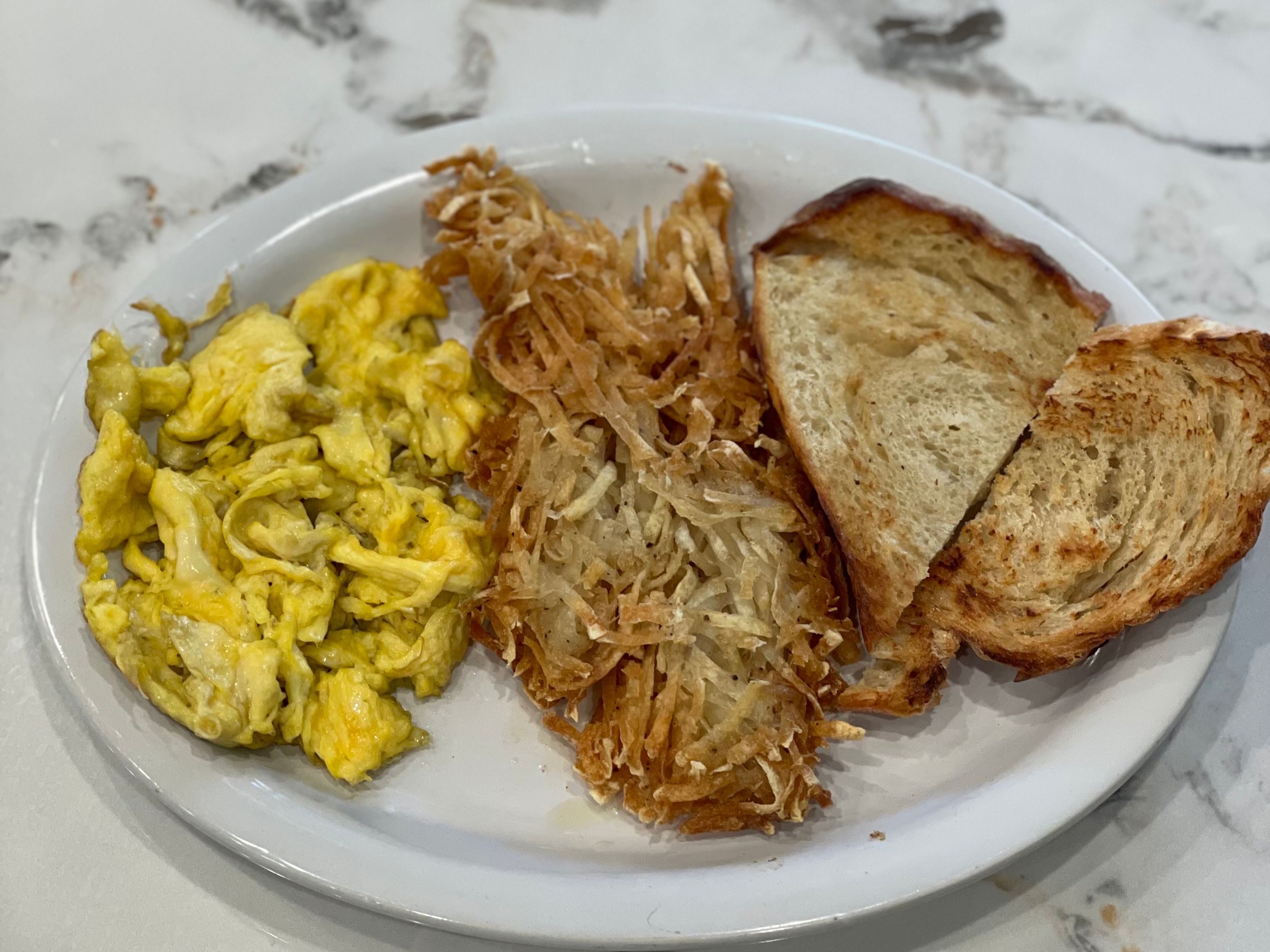 3 Eggs served any style. Served with a choice of hashbrowns or fruit, and toast.