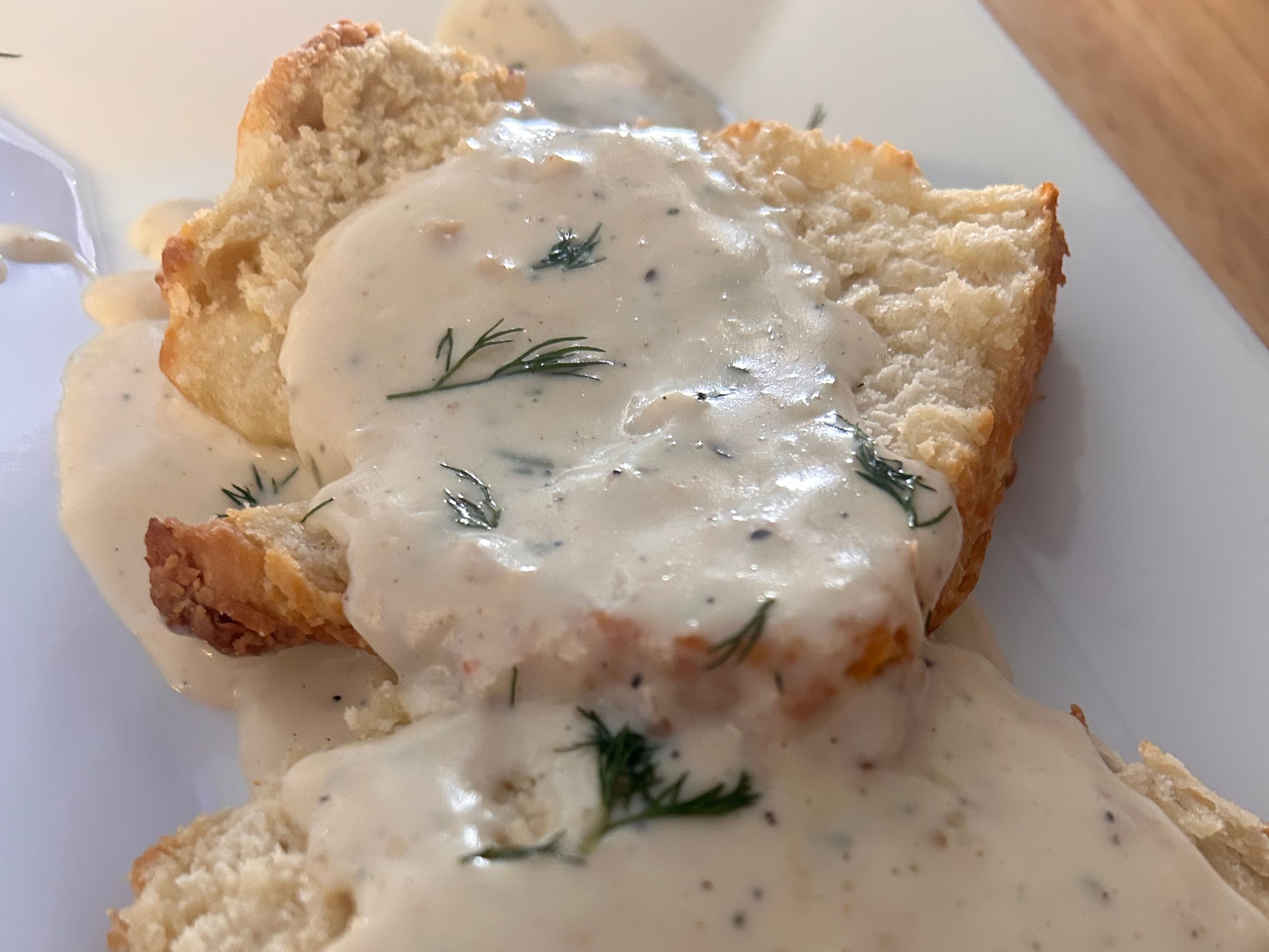 Fresh baked Biscuits, generously topped with country style gravy.
